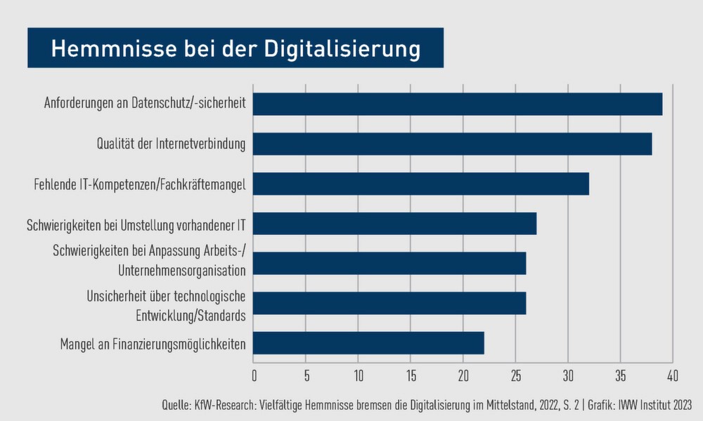 - 53 % melden Probleme bei der digitalen Transformation (Vorjahr deutlich niedriger).